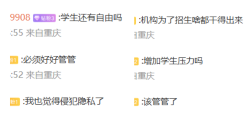 学生的一举一动被“公开展览”,不少网友质疑,该行为是否在借“严格管理”“刻苦学习”的场景博得关注、变相宣传?教室虽属公共场所,但学生的学习状态、面容等应属于个人隐私,公开直播恐涉及隐私权的侵犯。此外,有网友担忧,复读生群体面临较大升学压力,实时画面被公开直播,可能让学生感到被监视,造成心理负担。“连晚自习都被直播,学生的自由何在?”